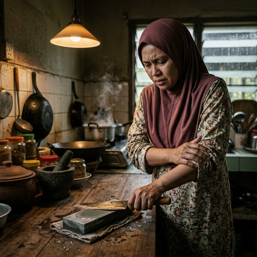Lenguh dan sakit tangan asah pisau guna batu asah?